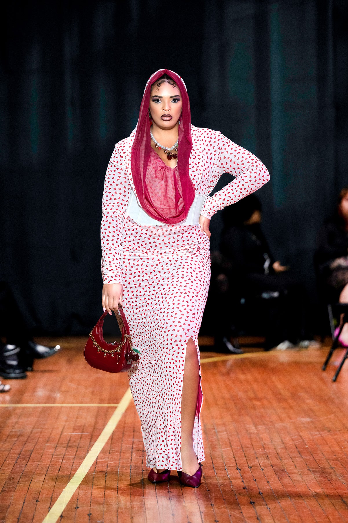 Pink Heart Print Maxi Dress — Size L